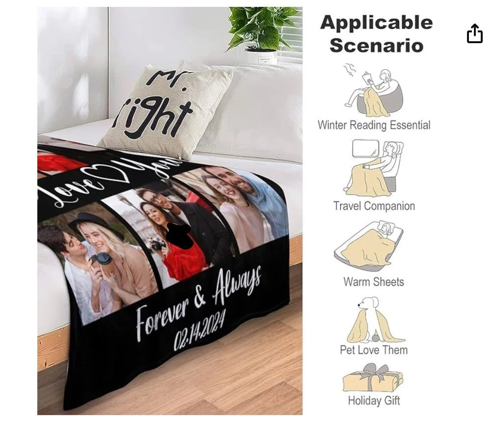 Custom photo blanket- $28 https://a.co/d/3YKcgwN